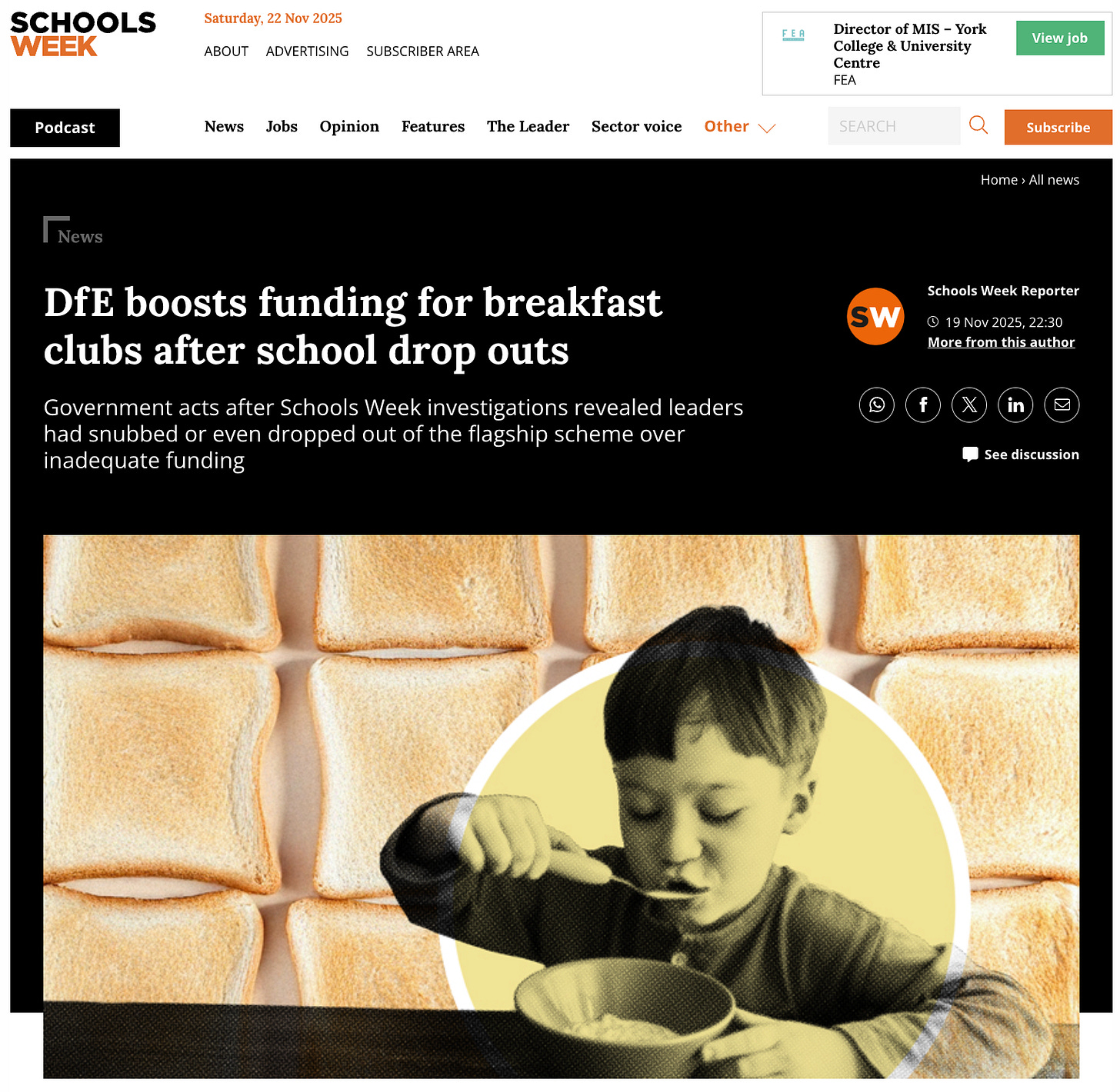 Labour are introducing ‘free’ breakfast clubs for kids. The concept being to give children the best start to the day with a nutritious breakfast. No one would argue with that in principle.